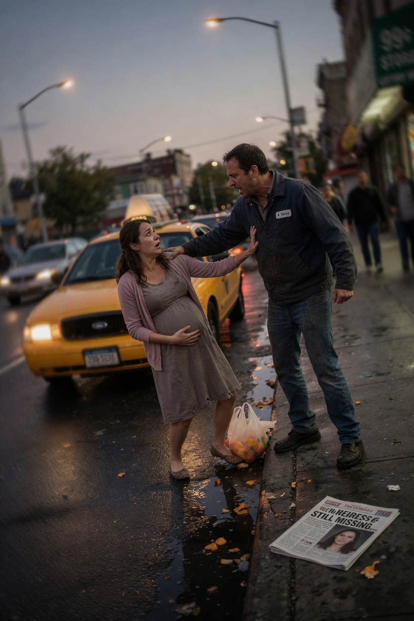 Her knees hit first. Pain shot through her legs so brightly she could not make a sound. Her palm scraped across wet asphalt. Her bag slid away from her, spilling the baby blanket into a puddle. Her body twisted, and she landed on her side, one arm wrapping around her stomach with a desperate animal instinct older than language.