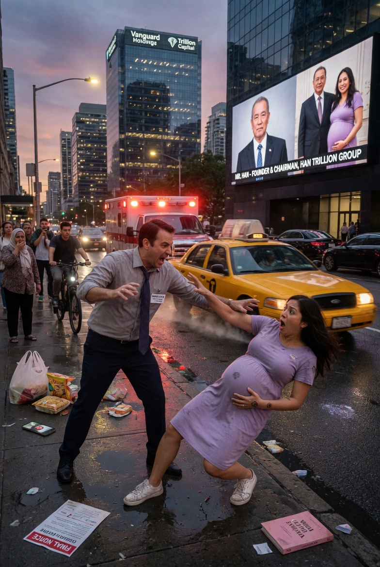 Zara fell backward into the street, her bag flying from her hand, her knees hitting the wet asphalt first. A sharp crack of pain shot through her legs. Her palms scraped against the road. Her body twisted instinctively to protect the baby, but the force pulled her sideways, and she landed hard on her hip, her belly tightening like a fist inside her.