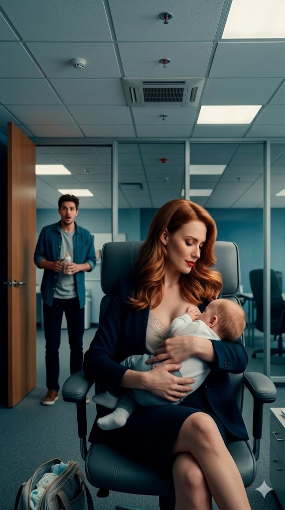 Emma—his boss, the enigmatic product manager who spoke in precise code reviews and never revealed anything personal—was sitting in the faded gray armchair with little Arthur cradled in her arms, and the baby was nursing from her breast with a desperation that bordered on starvation finally being answered.