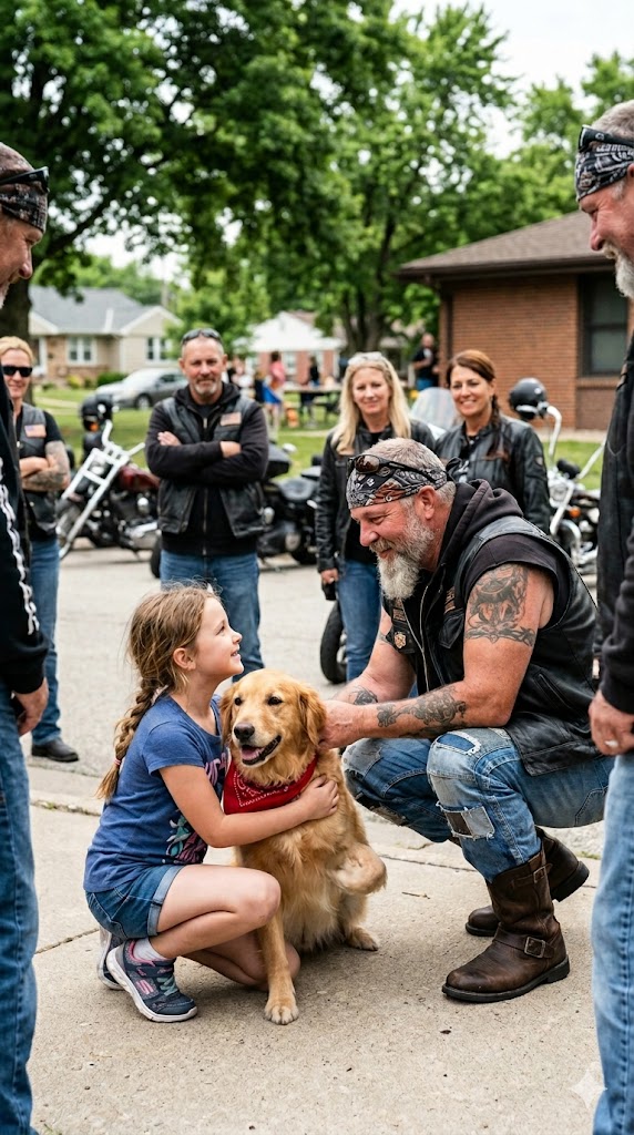 The big biker crouched again. This time, he looked directly into her eyes. His were cold, but not cruel. They were the eyes of a man who had seen things that couldn’t be unseen. “What’s your name, sweetheart?”