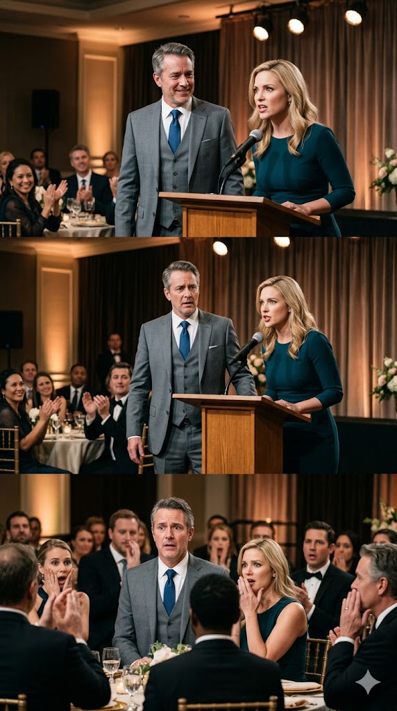 A woman in the front row started crying. Not for Marcus—for Lena. The silence stretched like a blade. Then Marcus did something no one expected: he dropped the award. It hit the stage floor with a clang that echoed through the stunned auditorium.