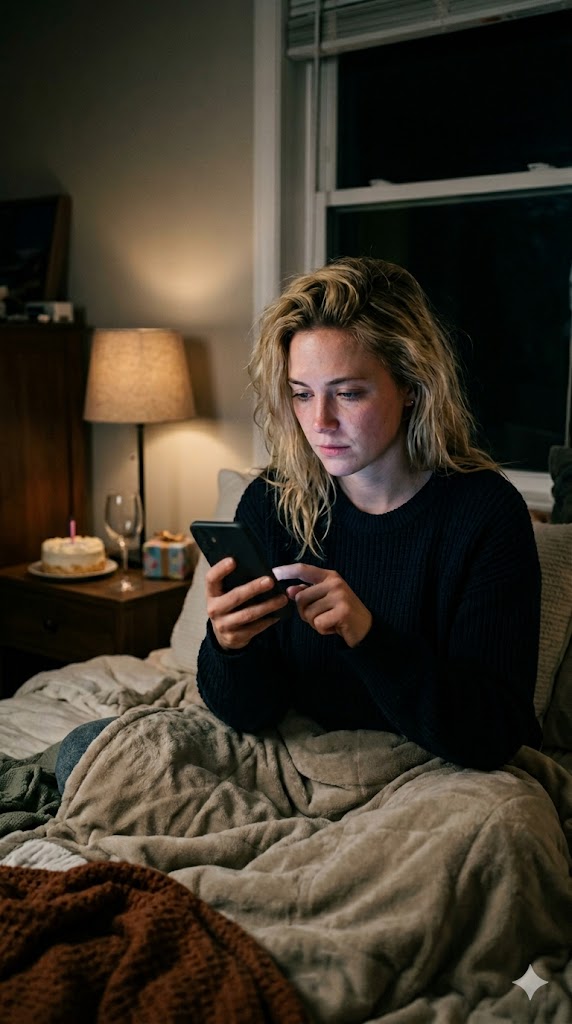 Christmas morning, I woke up alone. I made coffee. I opened presents—a new sweater from Cousin Sarah, a gift card to my favorite bookstore from Aunt Diane, a framed photo of my grandmother and me from her visit. I made pancakes. I watched a movie. I didn’t check my phone.