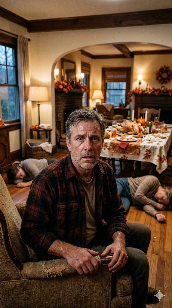 I wanted to crawl to my son, but my body no longer obeyed. I fell from the chair, my cheek pressing against the cold wooden floor, the smell of still-warm cream chicken mixing with spilled wine from an overturned glass.