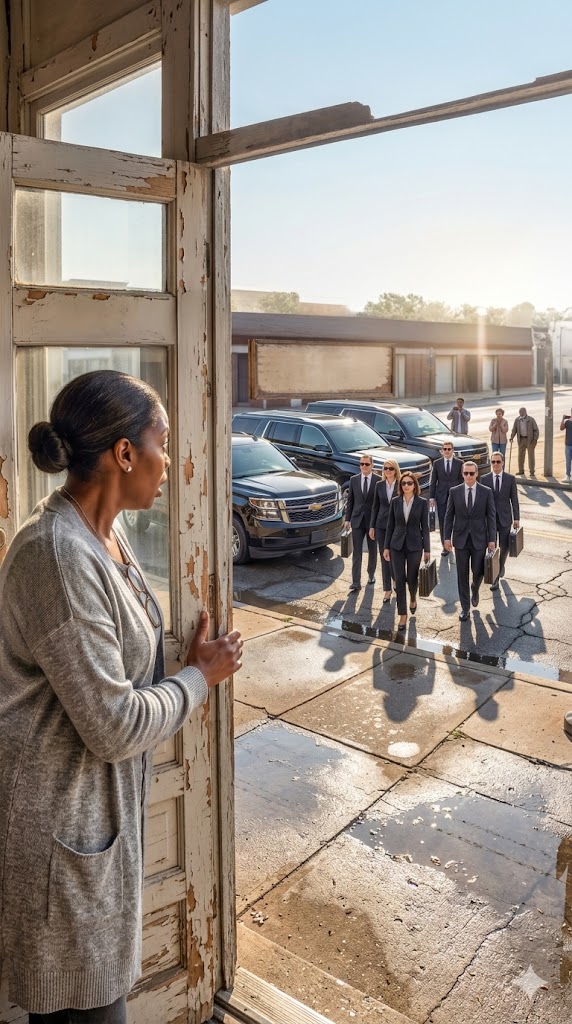 Through the rain-streaked window, she could see a man’s silhouette—soaked, trembling, his expensive suit hanging from his shoulders like a wound that wouldn’t close.